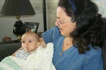 [This is one of my favorite pictures of Sis. Patty and beautiful Bronwyn (6 months) which Patty so kindly shared with me last month during Laura's visit. I especially like it because Laura's picture is right over Bronwyn's head. That's grandmother, daughter and granddaughter. -LC]