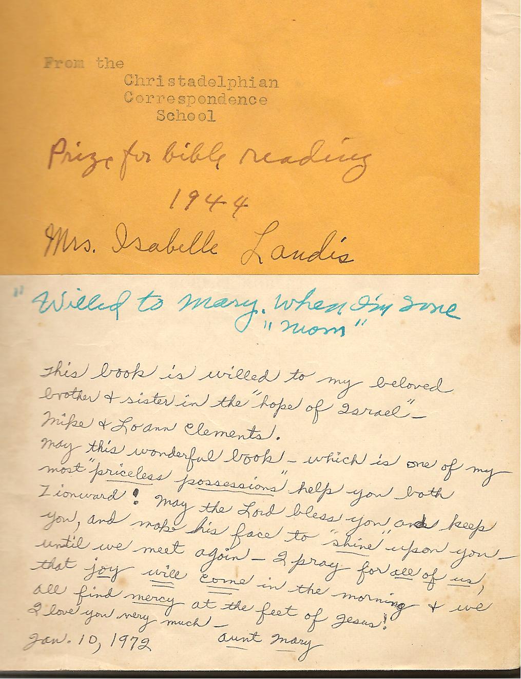 The cover leaf of Sis. Mary's "priceless possession" SEASONS OF COMFORT by Bro. Robert Roberts, 1944 edition