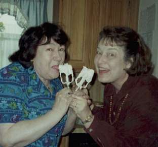 We finished the last batch of icing just as the first sisters started to arrive. Since the icing was finished and I was the "ox that treaded" it with the beaters, I rewarded myself with a bit of the icing that was left on the beaters - I did share with my dear mother-in-law, Sis. Billie Clements.