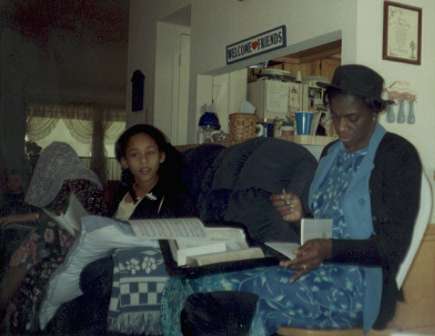 We started our study with an opening prayer and the singing of the beautiful song "The Shadow of His Wings" written by Sis. Julie Anderson of the Royal Oak Ecclesia in Michigan, U.S.A. During a recent visit, Sis. Debi Wilhoit's talented daughter, Sarah, taught me and Sis. Angi this wonderful song. Sis. Angi liked it so much she wanted to teach it to her Sunday School class so we introduced it to the sisters. We have found that one of the quickest ways to teach a new song to the children is to first teach it to their mothers. All the sisters loved the song too and sang it with enthusiasm, and even a few tears. It's a very moving song.