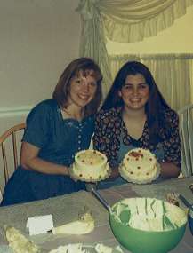 Angi and I spent the most pleasant morning in her homey kitchen. I was stationed at the mixers and Angi was tinting the finished icing with the slightest touch of yellow butter cream coloring. Working in someone else's kitchen is always fun for me, but working in your own daughter's kitchen is a special joy.